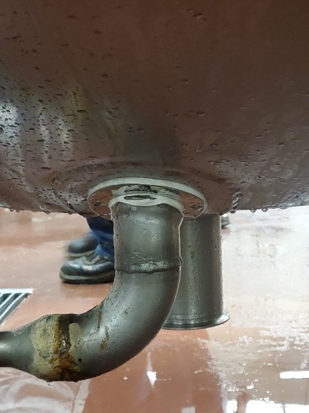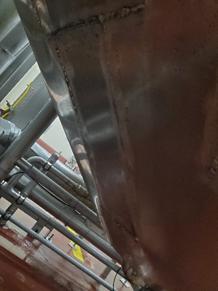Following the inspection, the team was set to embark on the demanding task of leak repair. Armed with professional welding equipment, lift assists, and an array of tools tailored for such rigorous tasks, the team initiated their action plan. Through meticulous work, they managed to weld the access panels back into place, sealing the condensate nozzle with a boot, ensuring that the tank was as good as new.